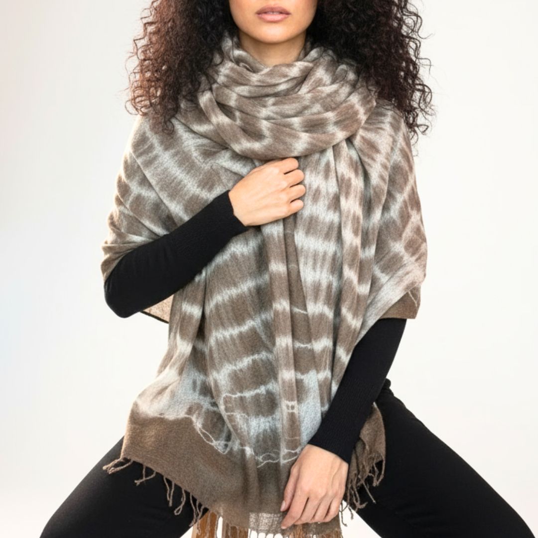 Kupferfarbene Kaschmirstola mit Batikmuster